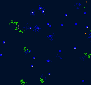 Each cell has states which are simple, wander, search for food or flee.