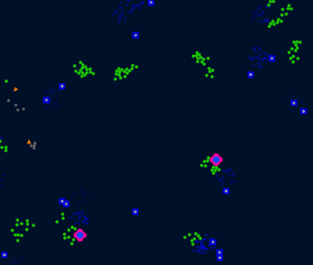 Blue Cells eat plants, and drop pheromones.